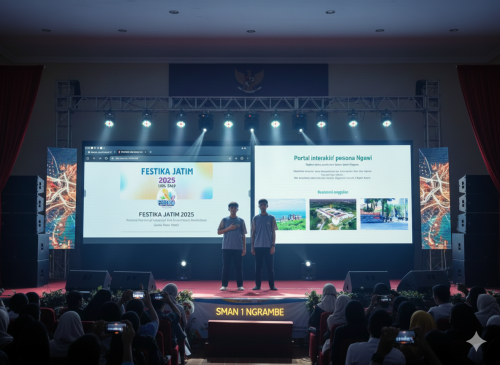 NGRAMBE – Inovasi digital lahir dari kepedulian. Dua siswa berprestasi kelas X A dari SMAN 1 Ngrambe, Bramantyo Ary Kusuma W. dan Ibrahim Ivanovich, telah merampungkan sebuah Website Online yang menjadi jawaban atas tantangan di sektor pariwisata. Karya ambisius mereka, "PORTAL INTERAKTIF PESONA NGAWI", siap berkompetisi di ajang bergengsi FESTIKA(Festival Teknologi Informasi dan Komunikasi Pendidikan Jawa Timur 2025).